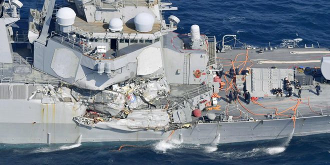 ونقلت أسوشييتد برس عن البحرية الأمريكية قولها انه “لم تسجل إصابات جراء حادث التصادم الذى وقع في خليج ساغامى جنوب غرب العاصمة طوكيو إلا أن أضراراً ألحقت بالمدمرة في أحد جوانبها”.