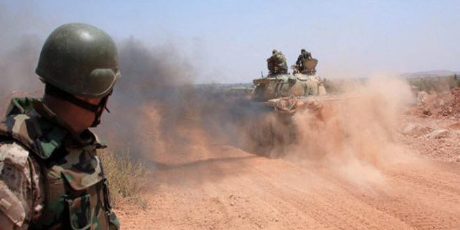 في ريف حماة تابعت وحدات الجيش العربي السوري تقدمها خلال عملياتها ضد إرهابيي تنظيم “جبهة النصرة” والمجموعات المنضوية تحت زعامته وقضت على آخر تجمعاتهم في قريتي حران وحردانة شمال شرق المدينة بحوالي 90 كم.