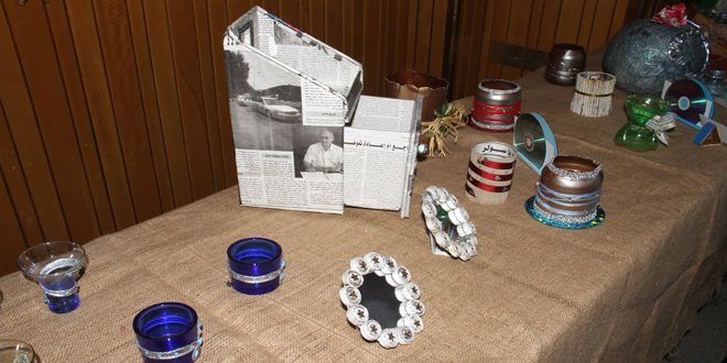 بدورها أشارت عبير عساف من الشركة العامة لصناعة الأحذية إلى أن المعرض فرصة لعرض منتجاتها اليدوية مثل السلل والفازات وغيرها من خلال الاستفادة من النفايات وتدويرها لتصبح أشياء ذات قيمة داعية النساء إلى إعادة تدوير النفايات المنزلية بما يسهم في إيجاد فرص عمل لهن ويحافظ على البيئة.