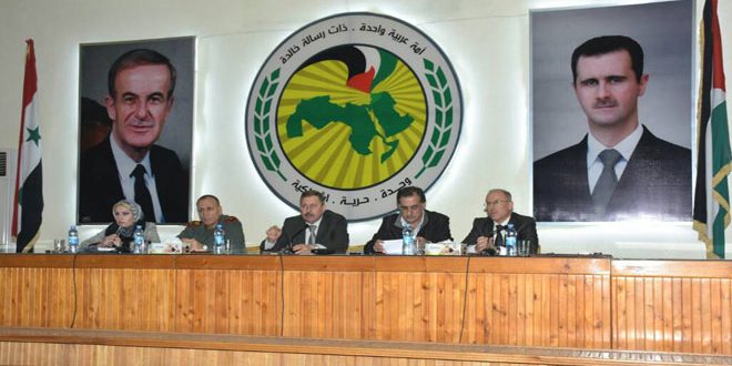 ودعا دياب خلال لقائه اليوم رؤساء لجان التربية في الشعب الحزبية والضابطة العدلية بحضور أمين فرع حلب لحزب البعث العربي الاشتراكي فاضل نجار إلى اتخاذ الاجراءات القانونية بحق المعاهد المرخصة وغير الملتزمة بالتعليمات.