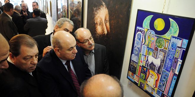 أجيال من المحترف التشكيلي السوري حضرت بلوحاتها وأساليبها المختلفة في المعرض الجماعي “تحية حب ووفاء لأبطال الجيش العربي السوري” الذي أقامه اتحاد الفنانين التشكيليين فرع دمشق بمناسبة الذكرى السابعة والأربعين لقيام الحركة التصحيحية في صالة الشعب للفنون الجميلة.