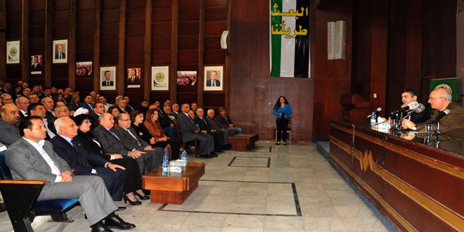 بدوره أكد عفيف دلا عضو قيادة فرع الحزب رئيس مكتب الاعداد والاعلام أن أهمية الملتقى تكمن بما يطرحه من مضامين ومواضيع نوعية استراتيجية بعيدة عن التحاليل السياسية النمطية مشيرا إلى أن مشروع “البحار الخمسة” هو الاصلح للتاسيس عليه مع الاخذ بعين الاعتبار الخصوصية السورية والحرب التي شنت عليها وخروجها منتصرة على المشروع الصهيوأمريكي.