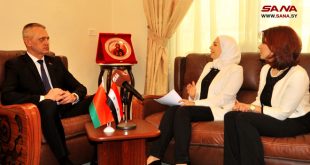 أكد السفير المفوض وفوق العادة لجمهورية بيلاروس في دمشق ألكسندر بانوماريف عمق العلاقات بين البلدين وتميزها والعمل على تطويرها والارتقاء بها لتشمل مختلف المجالات.