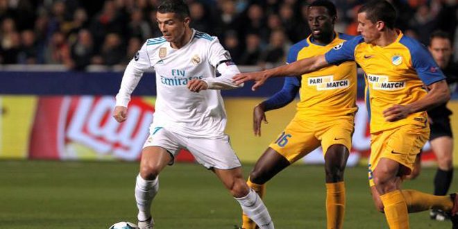 حقق ريال مدريد حامل اللقب فوزا كبيرا في دور المجموعات بدوري أبطال أوروبا بكرة القدم بعد تغلبه على مضيفه أبويل نيقوسيا القبرصي بستة أهداف دون مقابل ليحتل المركز الثاني في المجموعة الثامنة خلف توتنهام هوتسبيرز.