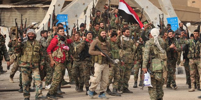 وقضت وحدات الجيش العربي السوري بالتعاون مع الحلفاء الأحد الماضي على آخر بؤر إرهابيي “داعش” في مدينة البوكمال جنوب شرق دير الزور بنحو 140 كم لتصبح المدينة محررة بالكامل.