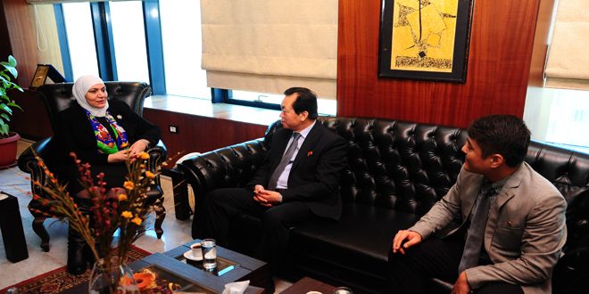 بحثت وزيرة الشؤون الاجتماعية والعمل ريمه قادري اليوم مع سفير جمهورية كوريا الديمقراطية الشعبية في سورية جانغ ميونغ هو سبل تفعيل العلاقات بين البلدين فيما يتعلق بمجال العمل وفرص التشغيل والمساهمة بإعادة الإعمار.