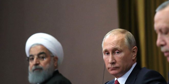 أكد الرئيس الروسي فلاديمير بوتين ونظيراه الإيراني والتركي عزمهم على مواصلة التعاون الفعال بين الدول الثلاث لإعادة الأمن والاستقرار إلى سورية مشددين على التزامهم الراسخ بسيادتها واستقلالها ووحدتها وسلامة أراضيها.