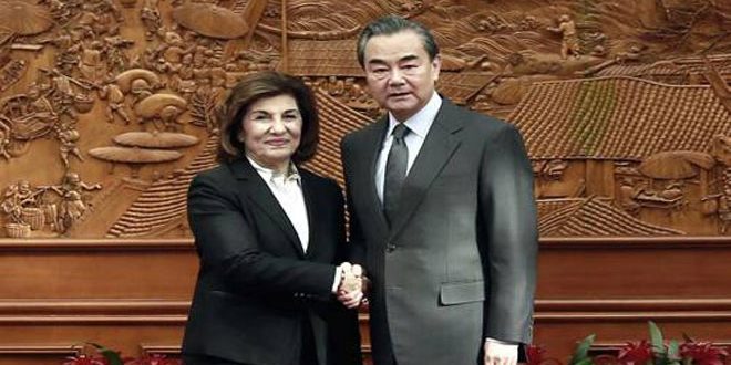 التقت الدكتورة بثينة شعبان المستشارة السياسية والإعلامية في رئاسةموافق الجمهورية وانغ يي وزير خارجية الصين الشعبية صباح اليوم في إطار الزيارة التي تجريها إلى جمهورية الصين الشعبية تلبية لدعوة وزير الخارجية الصيني.