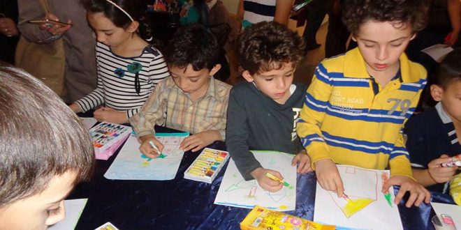 الورشة التي أقيمت بمناسبة اليوم العالمي للطفل واحتفاء بيوم وزارة الثقافة رسم فيها نحو خمسة وثلاثين طفلا وطفلة أعمالا حاكت مخيلتهم من صور ومناظر طبيعية من محيطهم وما تتعرض له سورية من عدوان.