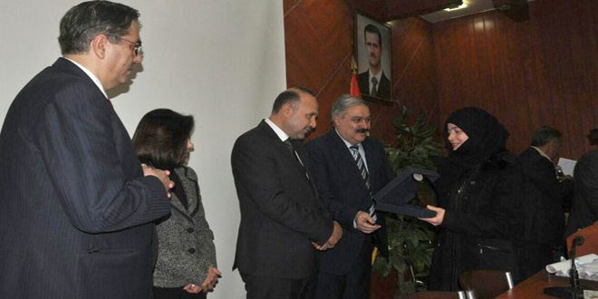 حضر التكريم هناء أحمد ووليد الثلث عضوا قيادة فرع حماة لحزب البعث وعضو المكتب التنفيذي لمجلس المحافظة ورئيس المكتب الفرعي لنقابة المعلمين بحماة عبد العزيز الأخرس وروءساء النقابات المهنية ومديرا الصحة والتربية.