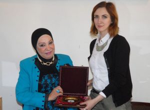 وقلدت عميدة كلية الآداب الدكتورة فاتنة الشعال الخبيرة ايفانوفنا درع رئيس جامعة دمشق.