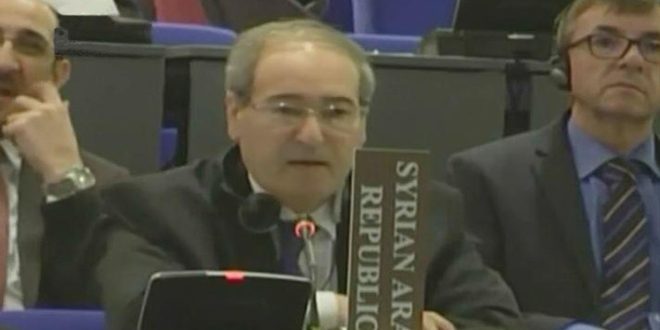 وشدد الدكتور المقداد على أن سياسات “الفوضى الخلاقة” وتغيير أنظمة الحكم بالقوة قادت إلى اتساع وتفشي ظاهرة الإرهاب في العالم بما في ذلك تنام ملحوظ لوصول الإرهابيين إلى المواد الكيميائية السامة في منطقتنا الأمر الذي يثير القلق الشديد ويخلق تحديا أمام مواجهة الإرهاب الكيميائي واستخدام مجموعات إرهابية كـ داعش وجبهة النصرة وغيرهما من التنظيمات الإرهابية التابعة لتنظيم القاعدة الأسلحة والمواد الكيميائية السامة في أماكن متعددة سواء في سورية أو في العراق أو التهديد باستخدامها في أماكن أخرى.