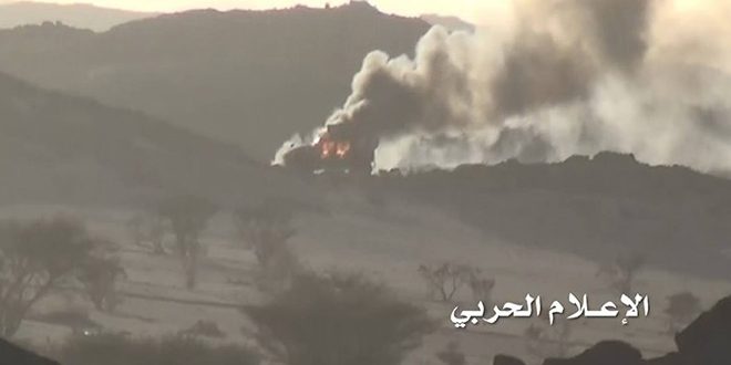 تدمير آلية للعدوان السعودي في جيزان وقصف أحد مواقعه في نجران