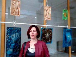 من جانبها بينت إيمان الكنج خريجة معهد فنون ومدرسة لمادة الرسم أن مشاركتها في هذا المهرجان هي الأولى لها عبر 12 لوحة وادخلت تقنيات فنية عليها من خلال الرسم على البحص والحفر على الجبصين مع التعتيق ولوحات وجوه من زمن الحرب باللون الأزرق البارد تعبر عن الألم جراء الإرهاب.