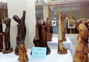 وجاءت مشاركة النحات نزار سعود ب 10 أعمال نحتية مستخدما فيها خشب الزيتون والتوت والليمون فهو فنان الفرح حسب تعبيره ليعكس بمنحوتاته حالة الفرح للخروج من الأجواء الحزينة التي فرضتها الحرب نحو مستقبل مشرق مؤكدا أن إقامة هذه المعارض فرصة مهمة لرفع المستوى الفني عند المتلقين متذوقي الفن.