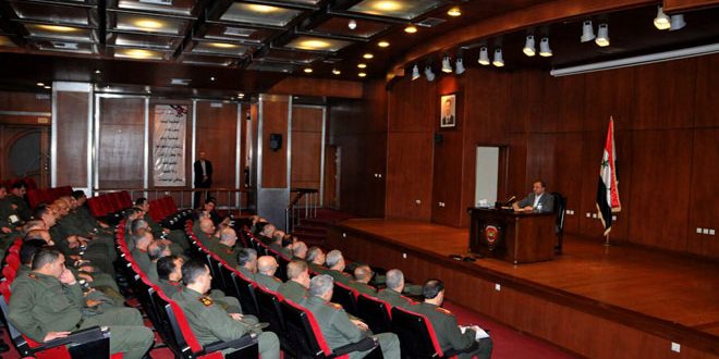 وشدد الوزير الشعار خلال لقائه اليوم الضباط خريجي دورة القيادة الوسطى في مبنى وزارة الداخلية على أهمية التاهيل والتدريب والاستمرار في رفع مستوى قوى الأمن الداخلي في أداء مهامها بالاستمرار في التصدي للارهاب الى جانب القوات المسلحة وتأمين النظام العام ومكافحة الجريمة بكل اشكالها والحفاظ على الامن والاستقرار واعادة الطمأنينة للمواطنين.
