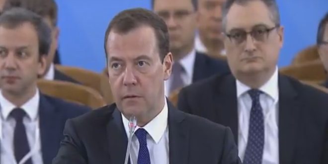 أكد رئيس الوزراء الروسي ديميتري ميدفيديف اليوم أن الإرهابيين في سورية تلقوا ضربة ساحقة لكن تهديد تنظيم “داعش” لا يزال قائما.