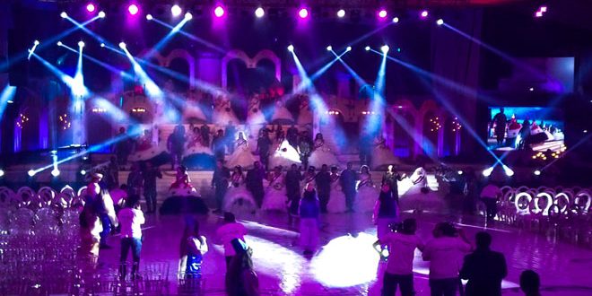 أقيم مساء اليوم في الصالة المغلقة بمدينة الأسد الرياضية في اللاذقية حفل زفاف جماعي بعنوان “عالحلوة والمرة” لألف شاب وشابة من أبطال الجيش العربي السوري ومجموعات الدفاع الشعبي من أسر الشهداء وهو العرس الجماعي الخامس الذي تقيمه شركة سيريتل ومؤسسة أمانة الشهيد.