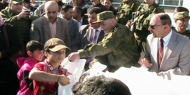 بدوره ممثل مركز التنسيق الروسي في حميميم لفت إلى أن “هذه المساعدات هدفها تخفيف المعاناة عن الأهالي الذين يعانون الضغط نتيجة الحرب” مؤكداً أن الدعم الروسي سيستمر حتى تحقيق الأمن والاستقرار في سورية والقضاء على الإرهاب.