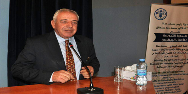 وأوضح رئيس جامعة حماة الدكتور محمد زياد سلطان أن الهدف من الدورة عرض معلومات ومهارات جديدة للأطباء البيطريين ونقلها من المخابر إلى الحقول والتعامل مع المربين لافتا إلى أنه ستتبعها دورات تحت شعار التدريب للجميع وتأمين مدربين من جميع المحافظات.