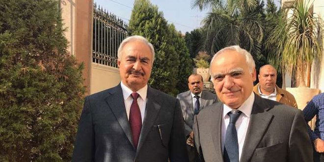 أعلنت الأمم المتحدة أن مبعوثها الخاص إلى ليبيا غسان سلامة عقد اليوم اجتماعا في القاهرة مع قائد القوات التابعة للحكومة المؤقتة المشير خليفة حفتر لبحث تطورات تسوية الأزمة في ليبيا.