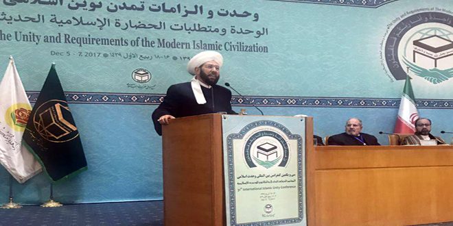 في كلمته خلال افتتاح أعمال مؤتمر الوحدة الإسلامية الحادي والثلاثين تحت عنوان “الوحدة ومتطلبات الحضارة الاسلامية الحديثة” أشار حسون إلى أن سورية انتصرت بشعبها وجيشها وقيادتها وهي اليوم تمد يدها لاحتضان جميع أبنائها عبر المصالحات في كل المناطق.