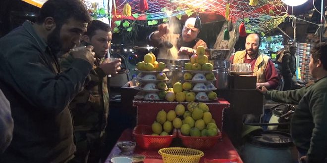 بخار ورائحة كمون ..كؤوس من زجاج وعدد من الزبادي المعروفة لدى السوريين بـ “الزبدية الصيني” ..رجل ستيني بلباس بسيط ينادي على المارة ويدعوهم لتذوق الفول المسلوق وهو يصطنع الجلبة حول حلة الفول التي تغلي على سماور يعطي للمكان دفئا خاصا.