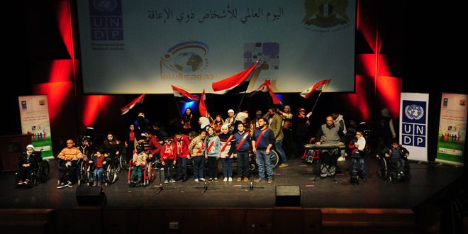 تنوعت الفقرات الفنية التي قدمها عدد من الأشخاص ذوي الإعاقة ضمن الاحتفالية التي أقامتها وزارة الشؤون الاجتماعية والعمل بالتعاون مع برنامج الأمم المتحدة الإنمائي ومركز الأعمال والمؤسسات السوري “مبادرة حدودي السما” مساء اليوم بين عروض مسرحية وغنائية ولوحات تراثية عبر المشاركون فيها من مختلف الإعمار عن مهاراتهم ومايتميزون به من إبداع.