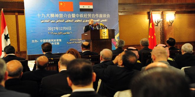 ركز المشاركون في الملتقى السوري الصيني لتطوير التعاون الثنائي بين البلدين على آفاق ومجالات تعزيز العلاقات الاقتصادية والتبادل التجاري بين سورية والصين ومدى الاستفادة من التنمية الاقتصادية الصينية وذلك في فندق الشيراتون بدمشق.