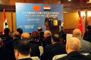 وأشار حيدر إلى ضرورة تعزيز التعاون في المجال الاستثماري إلى جانب تهيئة البنية التحتية وتطويرها بما ينسجم مع توجيهات الرئيس الأسد بالنسبة للتوجه شرقا ومع مبادرة الصين نحو إحياء طريق الحرير الجديد أو ما يعرف ب “الطريق والحزام” معرباً عن أمله بزيادة حجم التبادل التجاري بين البلدين ومعالجة العوائق التي تحول دون امكانية نفاذ المنتجات السورية إلى الصين ولا سيما مع وجود العديد من السلع والمنتجات التي تلبي أذواق المستهلكين الصينيين.