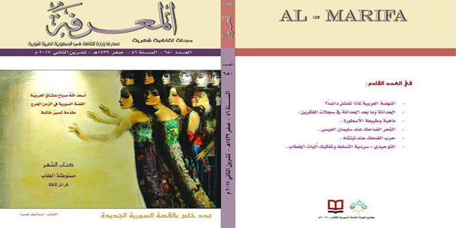 خصت مجلة المعرفة الثقافية الشهرية الصادرة عن وزارة الثقافة القصة السورية الجديدة بعدد خاص لشهر كانون الأول تضمن قصصا لكتاب سوريين معاصرين الى جانب كتاب المعرفة الشهري الذي ضم قصة مستوطنة العقاب للكاتب التشيكي فرانز كافكا ترجمة سعيد الحكيم واختيار وتقديم ناظم مهنا.