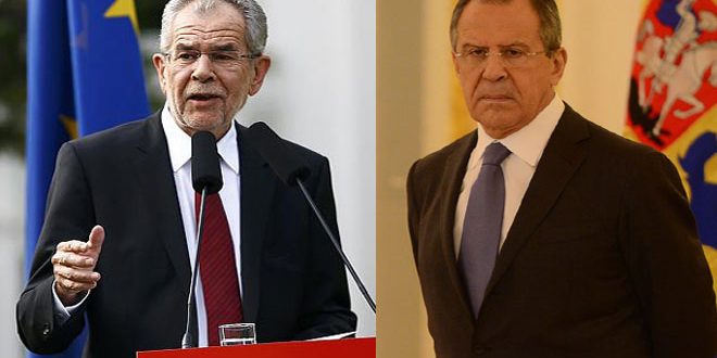 بحث وزير الخارجية الروسي سيرغي لافروف والرئيس النمساوي الكسندر فان دير بيلين الوضع في سورية والأزمة الأوكرانية وذلك على هامش اجتماع المجلس الوزاري لمنظمة الأمن والتعاون في أوروبا في العاصمة النمساوية فيينا اليوم.