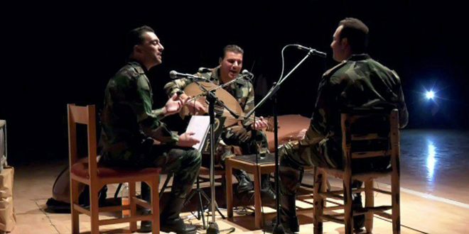 أديب حميرة عازف العود ومؤلف الأغاني ووسام حريباعازف الناي وغيد ابراهيم حضروا على المسرح ونقلوا معهم “استديو عسكري” ببساطته وأغانيهم التي شغلت مساحة واسعة في وسائل التواصل الاجتماعي للسوريين بعد أن لامست عن قرب واقع كل أبناء سورية في ظل هذه الحرب وخاصة العسكريين منهم وهم يعيشون كل تفاصيل هذه الحياة باعتبارهم من أبطال الجيش العربي السوري.