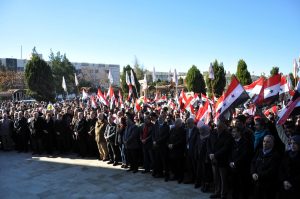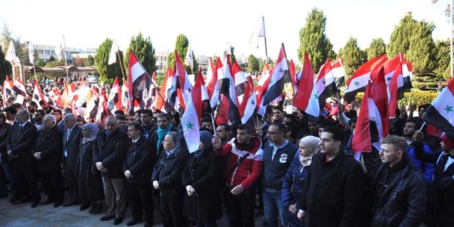 وقفة حداد على أرواح شهداء التفجير الإرهابي في حي عكرمة بحمص