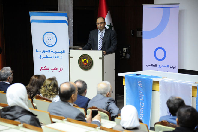 بمناسبة اليوم العالمي للداء السكري أقامت الجمعية السورية لداء السكري بالتعاون مع مشفى الأسد الجامعي ندوة علمية بعنوان (المرأة والسكري) على مدرج الشهيد باسل الأسد في المشفى.