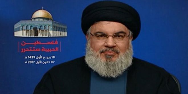 وتابع السيد نصر الله” أن ادراك مخاطر القرار الامريكي سيشكل حافزاً للجميع لتحمل المسؤولية والتحرك لأن القرار شكل حافزاً للهيمنة الإسرائيلية المطلقة على القدس ومن هنا تأتى خطورة قرار ترامب محذراً من أن مصير المقدسات الإسلامية والمسيحية في القدس بات في خطر شديد والخطر الأكبر يتهدد المسجد الاقصى لافتا الى أن هذه المقدسات باتت لـ “اسرائيل” وفق الموقف الأمريكي.