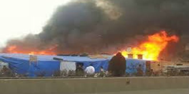 وقالت الوكالة الوطنية اللبنانية للإعلام:”إن الحريق الذي شب داخل المخيم اسفر عن وفاة ثمانية أشخاص وجرح أربعة بين قاطني المخيم وحرق أكثر من ستين خيمة للمهجرين”.