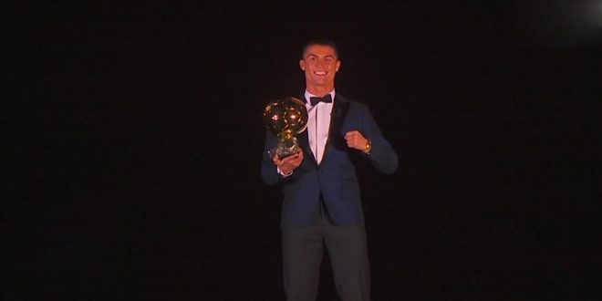 توج البرتغالي كريستيانو رونالدو بجائزة الكرة الذهبية لأفضل لاعب كرة قدم في العالم اليوم.