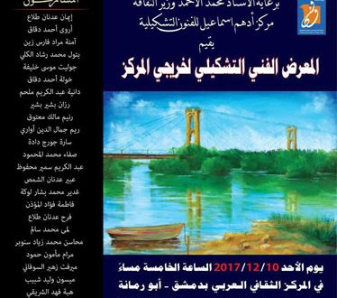 تستضيف قاعة المعارض في المركز الثقافي العربي بأبو رمانة عند الخامسة من مساء الغد معرضاً تشكيلياً لخريجي مركز أدهم اسماعيل للفنون التشكيلية لعام 2017 الدورة الأولى.