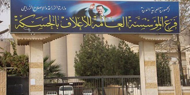 خفض فرع المؤسسة العامة للأعلاف بالحسكة سعر مبيع طن مادة النخالة العلفية الخاصة بالثروة الحيوانية بمقدار 7700 ليرة سورية.