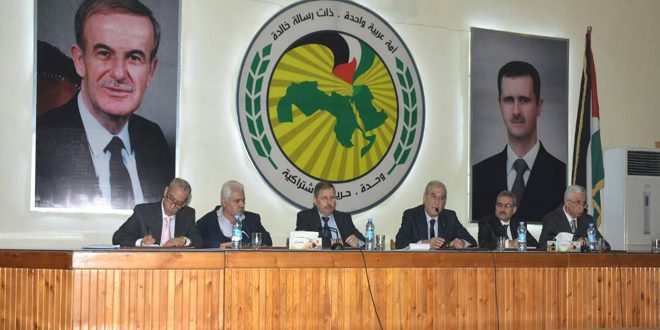 من جانبه اشار أمين فرع حلب للحزب فاضل نجار الى ضرورة العمل بروح المسؤولية الوطنية والإهتمام أكثر بقضايا المواطن وتلبية احتياجاته مبيناً أن المرحلة الراهنة والقادمة تتطلب الكثير من الجهد المخلص ومكافحة جميع أشكال الترهل والفساد والنهوض والارتقاء بالعمل بما يتناسب مع التضحيات الكبيرة التي قدمها أبطال الجيش العربي السوري.