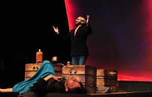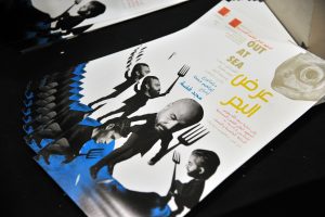 في تجربته الإخراجية الثانية بعد مسرحية “النافذة” يذهب مجد فضة إلى إدانة ساخرة للإنسان المعاصر والذي حولته الأزمات إلى كائن يأكل لحم أخيه ميتاً متنازلاً عن أخلاقه وروحانياته عارياً أمام جوعه وعطشه ونزعته المتوحشة مستعينا بسينوغرافيا ولاء طرقجي التي قدمت حلاً بصرياً وظفه المخرج لصالح عناصر العرض ككل دون أن ينجح في صهر هذه العناصر في بنية العرض لتبقى الطوافة عنصراً تزيينياً كان من الممكن الاستغناء عنه بمساحة فارغة دون أن يترك ذلك أثراً يذكر على الفرضية المقترحة.