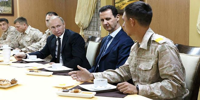 من زيارة الرئيس بوتين لقاعدة حميميم العسكرية واستقبال الرئيس الأسد له