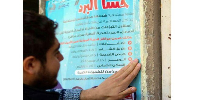 خسا البرد مبادرة مجتمعية هدفها جمع الملابس المستعملة وإعادة تدويرها وتوزيعها على الفئات المحتاجة أطلقها مؤخرا مشروع عون للإغاثة والتنمية أحد مشاريع الجمعية الخيرية الإسلامية في حمص.