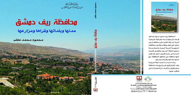 يقدم كتاب “محافظة ريف دمشق مدنها.. بلداتها.. قراها.. مزارعها” دراسة جغرافية وتاريخية وأثرية أعدها الكاتب محمود محمد علقم حول ما تحتويه هذه المحافظة من مراكز بشرية مستعرضا نشأتها والمراحل التاريخية التي تعاقبت عليها وموقعها ونشاطها الاقتصادي الحالي.