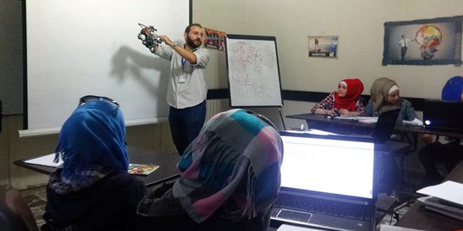 “طارق زيدو” شاب من حلب عانى كغيره من أهالي مدينته من اعتداءات التنظيمات الإرهابية التي استهدفت بقذائف الغدر الأحياء السكنية فاتخذ من دراسته في كلية الهندسة الكهربائية والالكترونية بجامعة حلب وسيلة لمساعدة الجرحى الذين أدت اصاباتهم إلى بتر أحد أطرافهم فكان مشروع تخرجه جهازا للتحكم بذراع روبوتية تساعد المصابين على القيام بأعمالهم اليومية.