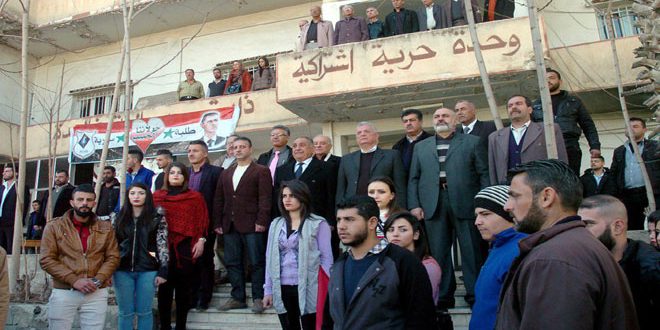 شارك في الوقفة التضامنية أعضاء قيادة فرع السويداء للحزب ومدير التربية بالسويداء ورئيس فرع اتحاد شبيبة السويداء ورئيس فرع جامعة دمشق بالسويداء وعدد من عمداء الكليات والمعاهد بالمحافظة.