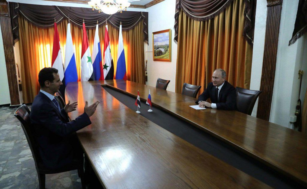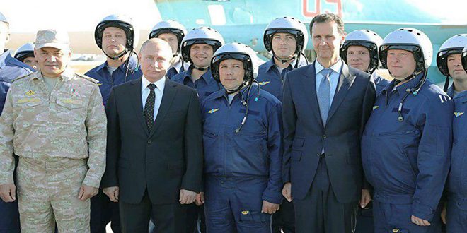 الرئيس الأسد يستقبل الرئيس بوتين في قاعدة حميميم العسكرية