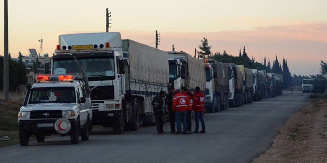 وتحرص الحكومة السورية على إيصال المساعدات إلى المواطنين في مختلف المناطق إضافة إلى تقديم جميع التسهيلات لضمان وصول المساعدات التي يقوم الهلال الأحمر بالإشراف على إيصالها لجميع المتضررين من الحرب الإرهابية على سورية وذلك بالتعاون مع الأمم المتحدة والصليب الأحمر.