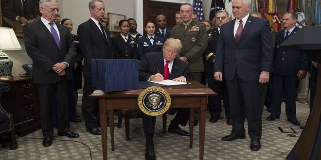 وقال ترامب خلال مراسم توقيع المرسوم في البيت الأبيض بحضور قادة البنتاغون ووزير الدفاع جون ماتيس كما نقلت فرانس برس إن “توقيع هذه